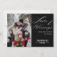 Mit diesem luxuriösen Design können Sie lieben Menschen, die nah und fern sind, herzliche Grüße und warme Wünsche senden. Diese moderne Weihnachtskarte hat elegante weiße Schrift auf schwarzem Hintergrund und enthält den Text "Liebe und Segenswünsche von unseren Herzen zu Ihrem". Auf der Vorderseite können Sie sie leicht mit einem Familienfoto, Familiennamen und dem aktuellen Jahr anpassen. Exklusiv für diese Karte ist die Überlagerung von Text über Text mit dem Familiennamen und dem Jahr, die einen einzigartigen Tiefeneffekt ergibt. Die Rückseite der Karte ist leer und hat die gleiche Farbe wie die Vorderseite. Es gibt viele Farbkombinationen zur Auswahl. Besuchen Sie die wachsende Kollektion auf dieser Produktseite oder der Startseite, um weitere Designs zu sehen.
