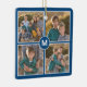 Erstellen Sie Ihre eigene Foto-Collage mit 4 Bildern in einem quadratischen Raster mit jeweils dünnen weißen Rändern auf blauem Hintergrund. Ein blauer Kreis mit weißem Rand überragt die Ecken der Fotos in der Mitte und zeigt das Monogramm in einem fett weißen Schriftart. Fügen Sie Ihre Initial- und Fotografien in der Sidebar hinzu, um sie zu personalisieren. Macht ein großartiges Weihnachtsgeschenk. Urheberrecht für Ornamente ©Claire E. Skinner. Alle Rechte vorbehalten. Fotografie © Storytree Studios, Stanford, CA