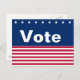Diese Postkarte hat weiße Sterne über einem blauen Feld oben.Das Wort 'Abstimmung' in weißen Buchstaben ist unter den Sternen. Am unteren Ende sind rote und weiße Streifen, die an die amerikanische Flagge erinnern. Anpassbarer Text auf dieser roten, weißen und blauen Wählerkarte unterstützt Sie dabei, Ihre Stimme und/oder Wählerregistrierung zu beenden.