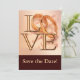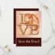 Liebe Hochzeitsringe Design. Schokolade Braun und Gold. Save the Date Fotokarten, Personalisieren Sie Ihre Verlobung Foto. Einfach zu machen, benutzerdefinierte Hochzeitskarten und speichern Sie die Datumskarten. Fügen Sie eine Touch Eleganz mit diesem goldenen und braunen Hochzeitsfest-Set hinzu. Verfügt über ein goldfarbenes und braunes Farbschema, mit einem Paar goldener Hochzeitsbands, um das "o" in der LIEBE zu machen. Passen Sie Ihre Daten an. Hübsches und aussagekräftiges Bräunungsdesign. Dieser Artikel ist als komplette Hochzeitskollektion mit Einladungen, RSVP-Karten, Save the Dates, Magneten, Stickers und vielem mehr erhältlich!