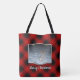 Spaß Weihnachten Weihnachten Foto Rahmen Vorlage mit einem karierten Muster rot und schwarz Hintergrund. Copyright © Angi Laframboise.