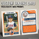 Mit dieser Vintagen Baseball-Handelskarte in Orange und Blau kommen Sie auf den Teller. Personalisieren Sie sich mit Foto, Statistiken und Details Ihres Spielers, um einen einzigartigen Sake zu erstellen. Ideal für Baseballfans, Baseballspieler, kleine Liga-Spieler, Coaches, Geburtstage und sportliche Party. Eine lustige Art, das Spiel zu feiern und Erinnerungen im klassischen Trading Card Stil zu bewahren. ❗ Senden Sie mir eine Nachricht, wenn Sie in verschiedenen Farben benötigen.
