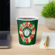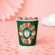 Diese wunderschönen Weihnachtsgeschirr-Tassen der Firma werden mit Ihrem Firmenlogo in einem festlich rot-grünen, goldgelben Party auf grünem Hintergrund gefertigt. Moderne Feriendekoration für ein Abendessen oder Feiern mit Angestellten oder Kunden.