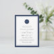 Passen Sie diese einfache und elegante monogramm Hochzeit speichern Sie das Datum Postkarten zu Ihren Farben! Fügen Sie einfach Ihre Ereignisdetails mithilfe der bereitgestellten Vorlagenfelder hinzu, und klicken Sie dann auf "Anpassen", um die Farben zu ändern. In klassisch, knusprig blau und weiß. Ein elegantes Abzeichen mit doppelter Grenze und kreisförmigem Monogramm am oberen Rand zeigt Ihre Farben schön, während das Blockschreiben und das Schriftzeichen in dunkelgrau Ihre Hochzeitsdetails im zeitlosen Stil präsentieren. Postkarten kehren zurück, um eine abgeschnittene Version Ihrer Save the Date Daten zu zeigen, mit Ihrer Rücksendeadresse und Platz für die Empfänger-Adressierung.