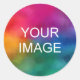 Benutzerdefiniert Text hinzufügen Laden Sie Ihr Foto-Image oder Firmenlogo hier Einfache Vorlage Klassischer Rundaufkleber.