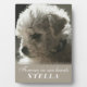 Personalisierte stilvolle Gedenktafel mit Staffelei mit dem Foto des weiblichen Hundes, ihrem Namen und einem schönen eleganten kalligrafischen Schriftzug. Zum Beispiel der Spruch "Für immer in unserem Leben". Emotionaler, sentimentaler Erinnerungsgegenstand an Ihren geliebten Hund oder Ihr Haustier, das leider nicht mehr physisch in Ihrem Leben anwesend ist. Premium-Hausdekoration zum Gedenken an ein geliebtes Familienmitglied, denn Haustiere sind definitiv Teil der Familie. Für Sie oder um einem anderen Hundebesitzer, der einen Verlust erlitten hat, Mitgefühl auszudrücken und Trost und Frieden zu bringen. Ein durchdachtes, sinnvolles, herzliches individuelles Geschenk für unter 25 Dollar. Leicht in jede Umgebung passend, minimalistisches, monochromes, neutrales weißes anpassbares Textdesign auf braun-beigem Hintergrund und eine subtile, raffinierte dekor