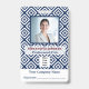 Modernes Muster Mitarbeiter Foto Identification ID Custom Card Abzeichen. Foto-Bar-Logo-ID Custom Abzeichen machen große Id Cards - Identification Cards für Ihr Unternehmen oder Ihre Organisation. Ersetzen Sie Informationen durch Ihr Foto, Bar und Informationen. Es hat ein modernes, blau-weißes Muster auf der Id Card, das sich herausstellt.