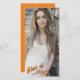 Elegante Abschluss Ankündigung, getan auf einem langen mageren Kartenvorrat, ein benutzerdefiniertes Foto des Abschlusses, als Hintergrund. Musterbeispiel Foto mit freundlicher Genehmigung von Lorri Lang. Auf der Rückseite der Ankündigung ist orange, mit allen Informationen des Abschlusses und Grades. Personalisieren Sie das Jahr, auf der Vorderseite und auf der Rückseite Text und Foto, um Ihre Bedürfnisse Anzug.
