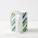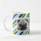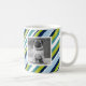Niedliche personalisierte Foto Tasse mit einem trendigen grünen, blauen und weißen Streifen Muster Hintergrund. Fügen Sie einer Tasse Ihre eigene persönliche Touch hinzu, indem Sie Fotos Ihrer Kinder, Haustiere und andere Familienmitglieder hinzufügen.
