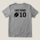 Custom Front and Back Football T - Shirt - in Grau mit schwarzem Design mit einem stilvollen runden Logo mit Fußball Helm, US Flagge. Personalisieren Sie Ihre Spiele mit dem Namen Ihres Spielers, der Jersey-Nummer und dem Nachnamen Ihres Spielers. Enthält einen Fußball-Akzent auf der Rückseite.