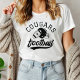 Kundenspezifisches Fußball Short Sleeve Shirt für Mamas - in Weiß mit Schwarzweißdruck. Farben können individuell angepasst werden. Das Design besticht durch ein stilvolles Fußball- und Helmlogo mit sportlichem Skripttext. Personalisieren Sie mit dem Namen der Fußballmannschaft Ihres Spielers Jersey Nummer.
