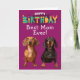 Herzlichen Glückwunsch zum Geburtstag...beste Mama aller Zeiten! Gib deiner Mama eine niedliche und lustige personalisierte Fotokarte von ihrem Pelzkind an diesem Geburtstag. Personalisieren Sie die Innenseite oder löschen Sie sie für eine handgeschriebene spezielle Nachricht. Anpassungsoptionen: Ändern Sie den Anlass, von wem die Karte stammt (der Name Ihres Hundes), für wen die Karte bestimmt ist (z.B. Mama, Vater, Nan, Gran, Heimatbruder oder -schwester, etc.). Sie können auch den Schriftart und die Farbe oder die Hintergrundfarbe ändern.