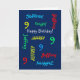 Was für eine wunderbare, personalisierte Grußkarte für einen 9. Geburtstag oder einen anderen Anlass. Auf dem Cover wiederholt sich Name und Alter in verschiedenen Schriftart und Farben auf marineblau Hintergrund. Einfach zu personalisieren - einfach den Namen, das Alter und die OCCASION an einem Ort ändern. Unterstützt Namen bis zu 9 Zeichen. Eine bunte und lustige Geburtstagskarte. Kinder, Teenager und Erwachsene werden es Liebe geben! Auch leicht zu ändern in Text, wenn gewünscht. Alle Rechte vorbehalten © 2014 Marcia Socolik.