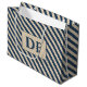 Benutzerdefinierte Initial Blau/Vanilla Stripes Große Geschenktüte