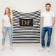 Benutzerdefinierte Initialen Schwarz/Weiß Streifen Fleecedecke