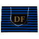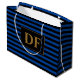 Benutzerdefinierte Initials Blau/Schwarze Streifen Große Geschenktüte