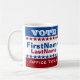 Rote, weiße und blaue Kampagnenvorlage für die Tasse mit weißen Sternen. Macht ein großartiges Geschenk für Wähler, Wahlkampfspender, Politiker, Freiwillige, Erinnerungen und mehr!