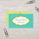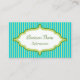 Helle türkisfarbene Streifen und Limone Streifen zieren diese stilvolle Visitenkarte. Passen Sie die Informationen auf dieser Visitenkarte an, um Ihren Bedürfnissen Anzug. Nutzen Sie diese Visitenkarte für ein Bed and Breakfast, Bäckerei, Florist, Dekoration, Boutique, Konditorei, Süßwarenladen, Gourmetküche, Zahnarzt, Innenarchitektur, Friseur, Salon, Catering, etc.... Das Design stammt aus der Originalkunst.