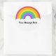 Dieser Rundaufkleber ist bereit, um mit Ihrer eigenen Nachricht, einem Namen oder einem eigenen Sprichwort individuell angepasst zu werden. Es zeigt eine Retro-Stil-Abbildung eines Regenbogens in hellen Farben mit Ihrem Text in fett schwarz Schrift in den weißen Wolken unten.