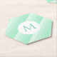 Custom Mint Green Stripes Moderne Monogram Template Trendy Hexagon Form Paper Untersetzer.