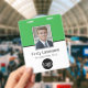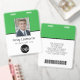 Ein grundlegendes Geschäftslayout, das Ihre Büro-Logos und den Namen des Mitarbeiters hervorhebt. Sie können einen Scan-Barcode auf der Vorder- und Rückseite hinzufügen. Sie können auch die Farbe des Hintergrunds ändern.