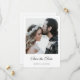 Dieses schlichte Foto Hochzeit speichern Sie das Datum flache Vorlage verfügt über ein auffallendes minimalistisches, modernes Design. Bitte stöbern Sie in unserem Shop für eine Version dieses Designs mit Save the Date goldfarbenem Text und auch als Postkartenformat! Die Vorderseite zeigt Ihre Vornamen unter Ihrem bevorzugten Foto und eine "Save the Date" Nachricht, die in einem eleganten, schlummernden Schriftsatz vermittelt wird. Sein blühte und Fluss wird durch die Ästhetik dieses Designs "Weniger ist mehr" betont. Dieses Save the Date Designelement ist beiderseits enthalten und kann nicht verändert werden, auch wenn Sie es für ein noch einfacheres Aussehen auf der Rückseite löschen möchten. Und auf der Rückseite können Sie natürlich auch unsere Beispielinfo durch Ihre eigenen ersetzen, Textfelder löschen, die Sie nicht brauchen, oder den Wortlaut ändern, sowie Schriftart, Größe und Farbe ändern. Sie können z.B. 'VERHEIRATET WERDEN' in 'DIE KNOT TYING' ändern oder etwas Anderes, oder Sie löschen die Beispielwebsite-Informationen, ohne sie durch Ihre eigenen Website-Informationen zu ersetzen, oder Sie können sie durch eine andere Nachricht komplett ersetzen. Wenn Sie für Ihre eigenen Vornamen auf der Rückseite editieren, können Sie auch Ihre Nachnamen angeben. Die Standardfarbe für Ihre Namen auf der Vorderseite ist schwarz, die Standardfarben für den Text auf der Rückseite sind schwarz und ein etwas aufgeweichtes Schwarz. Die Standard-Hintergrundfarbe auf beiden Seiten ist Set als transparent, um die Papierfarbe lassen dienen einfach als Grundton. Aber man kann das bearbeiten und das Aussehen eines oder beider Seiten in dieser Hinsicht verändern, ebenso um seinen Stil Anzug zu geben. Passen Sie diese elegante, moderne, minimalistische Hochzeit auf und speichern Sie das Datum flache Kartenvorlage mit Ihrem Foto und Ihrer Inspiration und machen Sie es einzigartig!