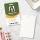 Ein modernes, grün-orangefarbenes Businessdesign, das Ihre Bürologos und Ihren Mitarbeiternamen hervorhebt. Sie können einen Scan-Bar-Code auf der Rückseite hinzufügen. Sie können auch die Hintergrundfarbe nach Bedarf ändern. Einfache Bearbeitung!