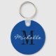 Benutzerdefinierte Monogramm-Schlüsselanhänger in der gewünschten Farbe. Erstellen Sie einzigartige Schlüsselketten in Ihrer bevorzugten Farbkombination. Personalisieren Sie das Programm mit Monogramm oder Text. Elegante Vorlage mit Skripttypografie. Ändern Sie die Menge, um den billigen Rabatt Preis zu erhalten. Blaues Beispiel.