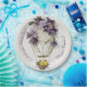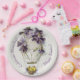 Diese individuell gestaltbaren Osterpapiere bieten ein niedliches, altes Bild von kleinen, gelben Babykichen in einem Heißluftballon aus einem Ei mit einem Korb, der mit Seilen voller lila Lilien verbunden ist.