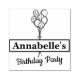 Feiern Sie eine Geburtstagsparty mit dieser niedlichen Briefmarke für Ihre Einladungen! Es hat mehrere Ballons mit einem Bogen verbunden, Vorlagenname "Annabelles" Text in der Mitte und "Geburtstagsparty" Vorlagenskript unten. Zwei Vorlagen für Sie erstellt.