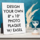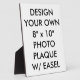 Benutzerdefinierte personalisierte 8" x 10" FOTO PLAQUE Leervorlage gedruckt. Entwerfen, erschaffen, eigene machen. Ein atemberaubend knackiger Farbsublimationsdruck aus Foto, Bild und Text, der eine berufliche Darstellung ohne Rahmen ermöglicht. Hardboard Panel mit angeschlossenem Ständer, für Portrait oder Landschaftsdarstellung konzipiert. UV-beständige glänzende Beschichtung schützt vor Kratzern und Verfall seit Jahren. Einfach abwischbare Oberfläche. Das Beste für Fotos und Hochzeitsgeschenke, Weihnachts- und Jubiläumsgeschenke.