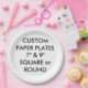 Maßgeschneiderte personalisierte Blindschablone ROUND Paper Teller - Grosser 9" Durchmesser. Set von 8 Tellern zum Einweg-Party.