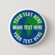 Runde rett Planeten Erde angepasste Pinback-Buttons. Blaues und grünes Weltkarte-Logo mit weißer Textvorlage. Erstellen Sie Aufkleber für die globale Erwärmung, Klimawandel Umweltfragen, Naturschutz, grüne Energie, Waldschutz, Proteste, Plastiksuppe, recycle, recycle usw. Zeichnend Land Meer. Rettet den Planeten, rett die Erde!