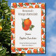 Ein individueller Aufkleber mit Vintager Küchenkiste aus Orangen mit kleinen Blüten auf dem Hintergrund und Etikett, mit braunen Retro- und Drehbuchstaben für Ihr handgefertigtes Rezept, Ihren Namen oder Ihre Firma, und mehr Infos.