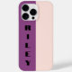 Die elegante und minimale Telefonzelle mit einem zweifarbigen Farbblock (albeszent weiß/rot/rot/misty Rose, lila/pflaumenfarben/viola/tief) in pastellfarbenen Goldtönen der Rose und personalisiertem Namen in ausgefeilten typografischen Schriftart. Niedliche Streifen Ästhetik mit schwarzem, dicken Text. Passen Sie die Schriftart- und Textfarbe mit dem Editor-Tool an, bewegen Sie sie sogar um und ändern Sie sie, wenn Ihr Name nicht passt. Für alle Apple iPhone Modelle und einige Samsung Galaxy Smartphones. Ideal für die femininen, mädchenhaften, schicken und stilvollen Frauen.