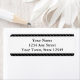 Das wiederholte Schreiben Ihrer Adresse kann eine Herausforderung sein, warum sollten Sie nicht den Knackpunkt des Autors vermeiden und stattdessen diese benutzerdefinierten vorgedruckten Rücksendeadressen-Aufkleber verwenden. Diese adressierten Mailing-Labels enthalten schwarzen Text auf weißem Hintergrund mit schwarz-weiß gestreiften Rahmen. Stellen Sie sicher, dass Sie die koordinierenden Einladungen, Umschläge und andere True Black Produkte in unserem Shop Karo.