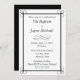 Diese spezielle schwarze Einladung ist der perfekte Weg, um Ihre Freunde und Familie zu der Taufe Ihres Kindes einzuladen. Diese individuelle Einladung bietet ein elegantes Scrolldesign und schwarzen Text. Sie können das mitgelieferte Taufen Einladungsbeispiel verwenden oder den Text für jede andere Veranstaltung, wie z.B. einen Abschluss, Polterabend oder Geburtstagsparty, anpassen. Sie können Schriftart, Textfarbe und Wortlaut von der Produktbestellseite leicht ändern.