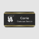 Benutzerdefinierte Schwarz- und Goldmarke für Firmennamen mit Logos und Textpersonalisierung - Mit diesen schlanken, anpassbaren schwarzen und goldenen Namensschildern kann Ihr Team perfekt für ein poliertes und berufliches Aussehen sorgen. Mit einem fett schwarzen Hintergrund mit simulierten metallischen Goldstreifen (bedruckt, nicht Folie) sind diese haltbaren Plastiknamen ideal für Unternehmen, Veranstaltungen oder kundenorientierte Rollen. Individualisieren Sie jeden Tag mit Ihrem Firmenlogo oder Ihrer Grafik und bis zu zwei Textzeilen für Namen und Titel mit unserer einfachen Vorlage. Diese Namensschilder sind so konzipiert, dass sie Ihren Mitarbeitern dabei helfen, sich zu überzeugen und einen bleibenden Eindruck zu hinterlassen. Sie verbinden Stil, Funktionalität und Branding.
