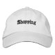 Shopping Hats für Shopping-Liebhaber, Online- oder Offline-Shopper. Mini Saloon Schriftart Größe Shopping Text Name mit Schwarz Farbe Text Classic, schön, neu, frisch weiß bestickte Kappen oder Hats