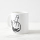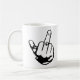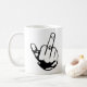 Finger Tasse. Finger Mann regelmäßige Tasse. Tasse mit Kaffee, Geschirrspüler und Mikrowelle. Der Finger des Menschen. Finger des Mediums, das online gedruckt werden soll. Der Finger ist transparent. Drucken Sie eine einzigartige Birdy zeichnend Tasse Mit diesem bizarren zeichnend Design.