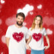 Benutzerdefinierte Textvalente Rote Rose Herzform T-Shirt