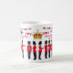 Eine reizvolle Krönung feiert Souvenir Tasse mit Grenadier Guardsmen, bunting und Krone, welcher Text ist leicht zu entfernen oder anpassen, wie Sie möchten. Die Krönung findet am Samstag, den 6. Mai 2023 statt. Die Grenadierwache sind eines der ältesten Infanterie-Regiments der britischen Armee. Sie sind schnell und mobil und spezialisieren sich auf den Betrieb von Light Role Infanterie, oft mit leichten Fahrzeugen wie Quad-Fahrrädern, um sich zu bewegen. Sie sind kurz bereit, überall auf der Welt stationiert zu werden.