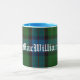 Großartig aussehende schottische Clan-Tasse im klassischen, blauen, grünen, roten und schwarzen MacWilliam-karierten Muster. Alte Welt Stil Text in weiß liest MacWilliam und ist anpassbar, um zu lesen, was Sie gewollt.