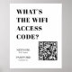 Machen Sie das Verbinden einfach und stilvoll mit diesem benutzerdefinierten WiFi-QR-Display. Gäste können einfach scannen, um Ihrem WiFi-Netzwerk beizutreten — kein Tippen erforderlich! Perfekt für Cafés, Büros, Salons oder Airbnb-Häuser, dieses moderne Design zeigt Ihren Netzwerknamen und Passwort mit dem Satz „Wie lautet der WiFi-Code?“ für eine freundliche Note. Sauber, minimalistisch und vollständig anpassbar, um Ihre Dekoration zu ergänzen.