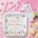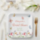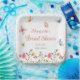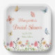 Brautparty-Papier-Teller mit individuellem -Dekor in einer ansprechenden und zarten Abbildung von Aquarellfarben-Wildblumen und Schmetterlingen im Vordergrund und einem hübschen Wildblume- und Schmetterlingsmuster im Hintergrund