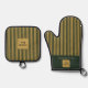 Benutzerdefinierter dunkelgrüner und goldener Stre Ofenhandschuh & Topflappen-Set