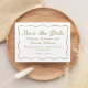 Feiern Sie Ihre Liebe mit unserem Whimsical Simple Wedding Save the Date Card! Set den perfekten Ton für Ihren besonderen Tag mit diesem bezaubernden, individuell gestaltbaren Design, das die Magie Ihrer Beziehung schön einfängt. Mit einem handillustrierten Rahmen in sanften Oliven-Grüntönen (für jede beliebige Farbe anpassbar) und eleganter Kalligraphie-Schrift auf einem knackigen, weißen Hintergrund verströmt diese Karte ein frisches, frühlingshaftes Gefühl, das sich ideal für moderne Hochzeiten eignet. Mit unserer einfachen Online-Anpassung machen Sie es sich einfach zu Ihrem ganz persönlichen Geschenk! Personalisieren Sie Farben, Formulierungen und Schriftartes, um Ihren einzigartigen Stil und Ihre Vision zu reflektieren. Wählen Sie zwischen professionell bedruckten Karten für eine polierte Oberfläche oder einem kostengünstigen sofortigen digitalen Download zum Drucken nach Belieben. Diese Save the Date Card ist für Paare gedacht, die ihren Hochzeitsaufenthalt mit Persönlichkeit und Freude gewollt haben. Sie ist ideal, um Ihren Gästen einen bleibenden Eindruck zu vermitteln. Beginnen Sie Ihre Hochzeitsfeier mit Stil und machen Sie Ihre Liebe mit diesem schönen Save the Date unvergesslich!