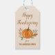 Custom Happy Thanksgiving Geschenkanhänger mit einem Kürbis und Herbst Blätter.