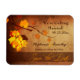 Diese stilvolle Hochzeit Save the date Premium Kühlschrank Magnet hat einen bräunlichen und braunen Vintagen gereizten Hintergrund mit einem Weinzweig auf der Oberseite links, der einige gelbe, orangefarbene, rote und braune Herbstlaube und einige "traubenartige" Formen herunter hängt. Save the Date rechts unten ist in einem trendigen, kursiven Schriftart geschrieben. Oben können Sie dies ganz einfach mit dem Datum Ihrer nächsten Hochzeit und den Namen der Braut und des Bräutigams am unteren Ende personalisieren.