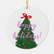 Benutzerdefinierter Familienname Rosa Weihnachtsba Keramik Ornament